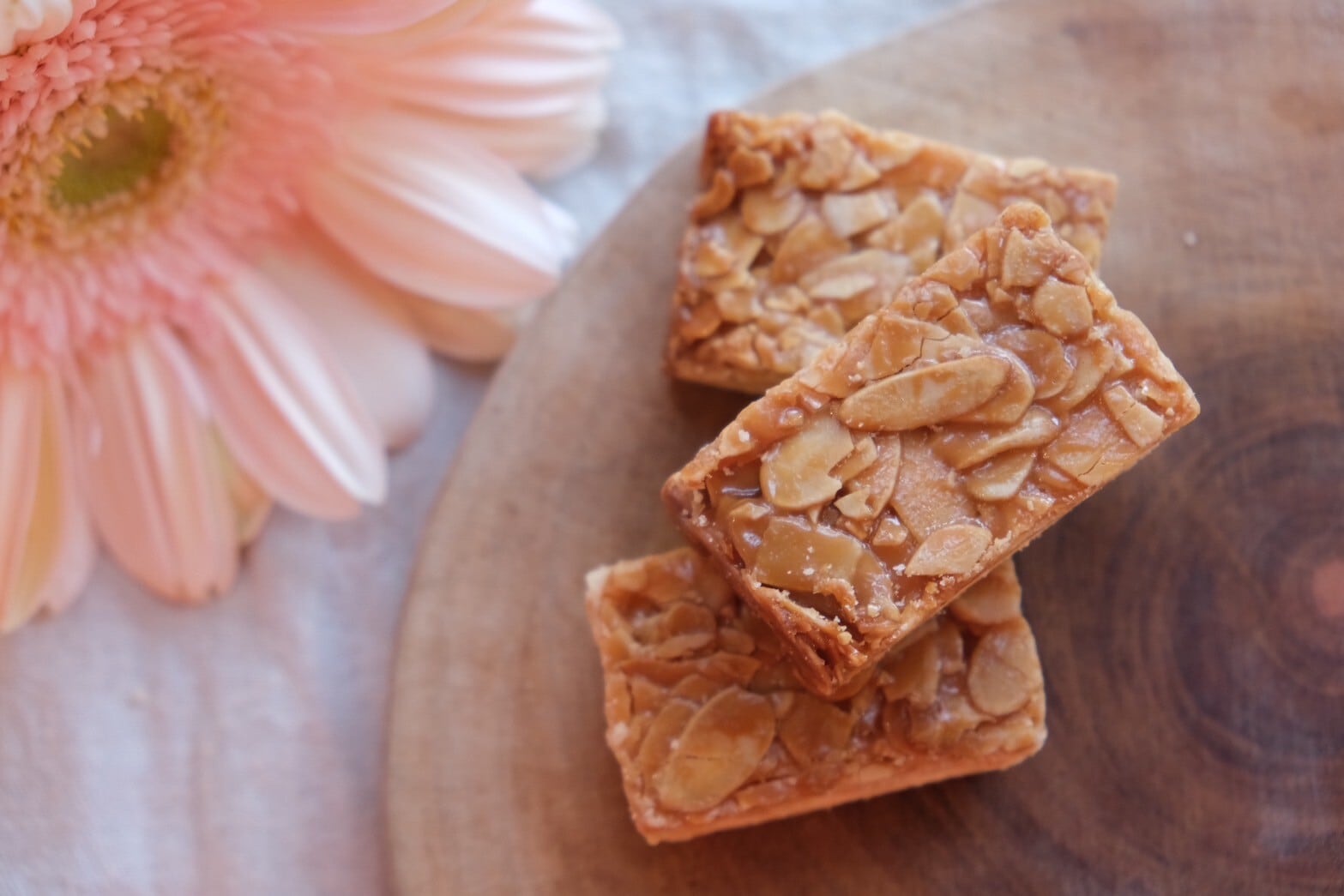 丁寧に焼き上げたシュクレ生地にアーモンドスライスをぎっしり乗せてコーティングしました。