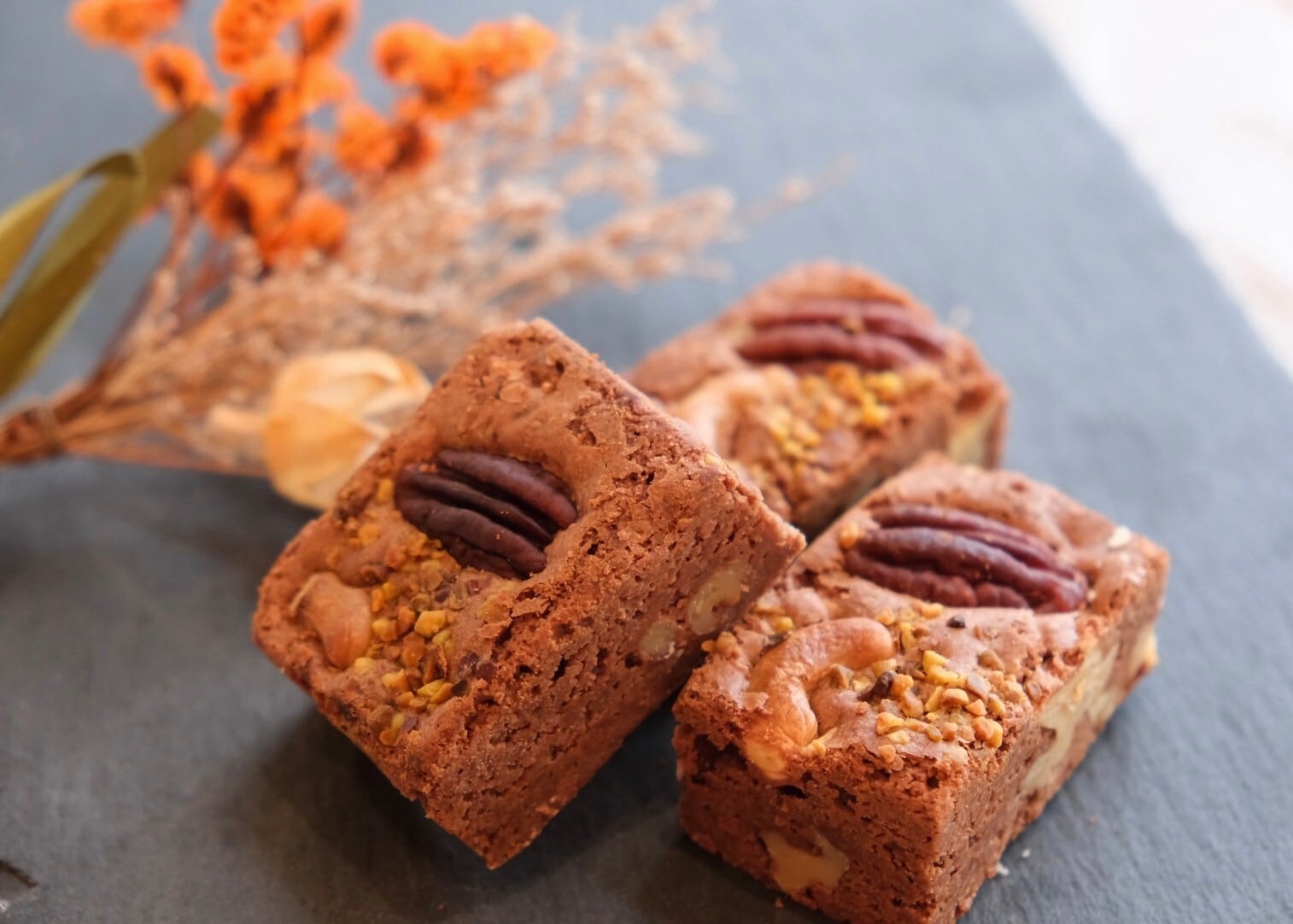 生地にはクルミを、表面には「ピーカンナッツ・カシューナッツ・ピスタチオ」の3種類のナッツを添えました。